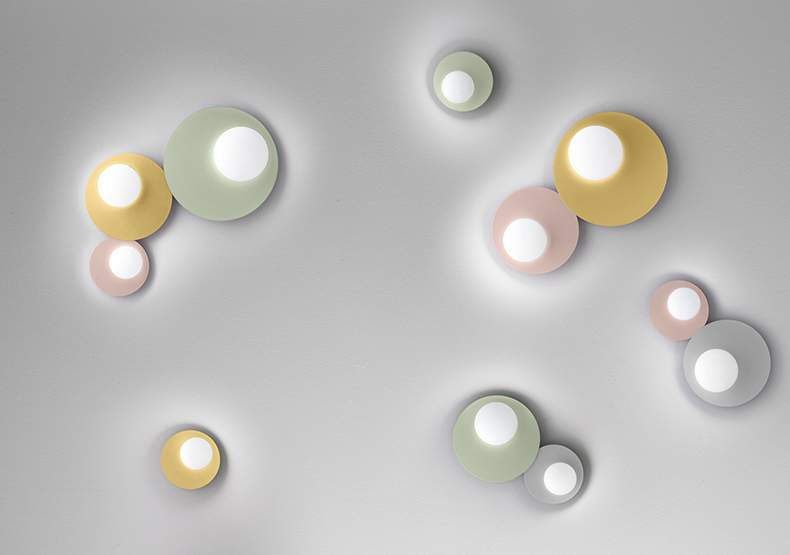 Bianca peut être une applique ou un plafonnier, seule ou en groupe. Les différentes finitions, soigneusement choisies parmi les palettes les plus contemporaines, dialoguent harmonieusement entre elles, même dans les tons les plus audacieux. La structure en aluminium recyclable et la LED intégrable remplaçable en font une lampe durable.